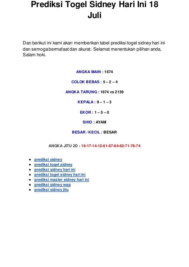Prediksi Sidney Hari Ini Minggu 19 Juli 2020 Prediksi Togel Hari Ini